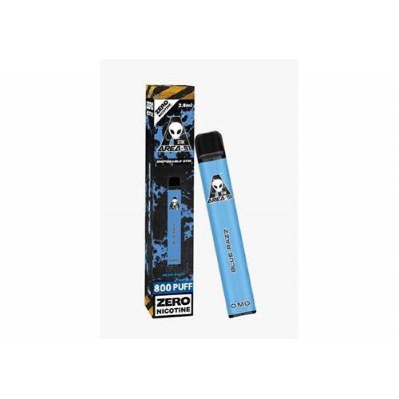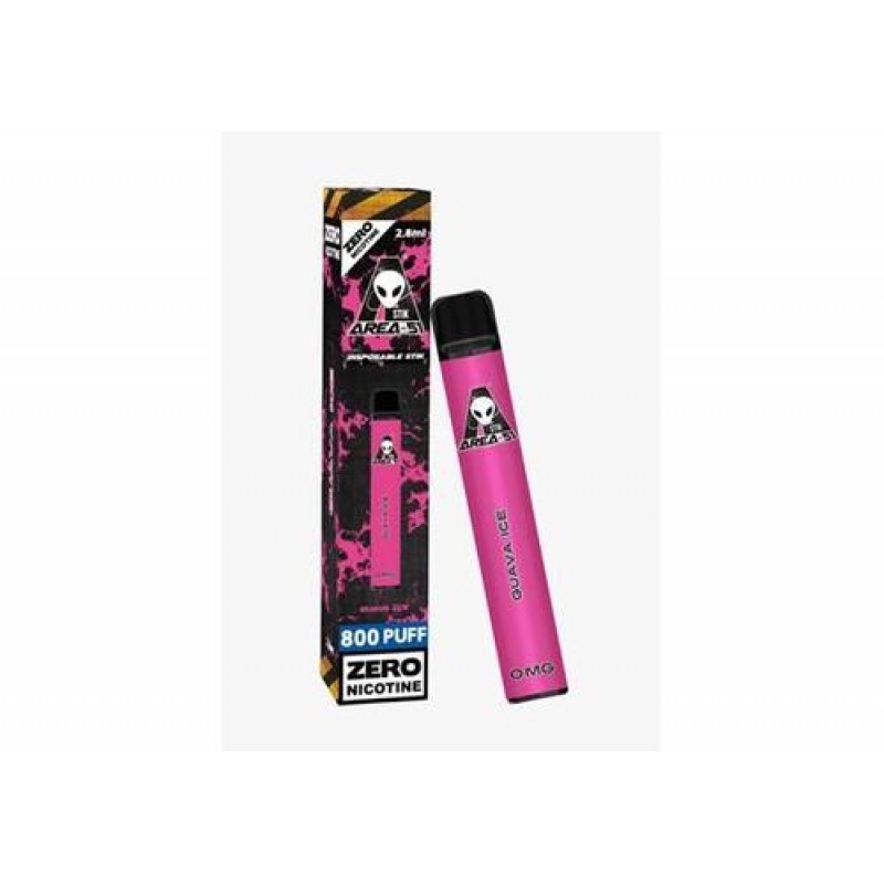 Area 51 Disposable pod kit has approximately more than 800 Plus Puffs 0MG (0%) Flavour Nicotine Salt 2 ML of pre-filled e-liquid Integrated 550 mAh Battery Non-Refillable Non-Rechargeable