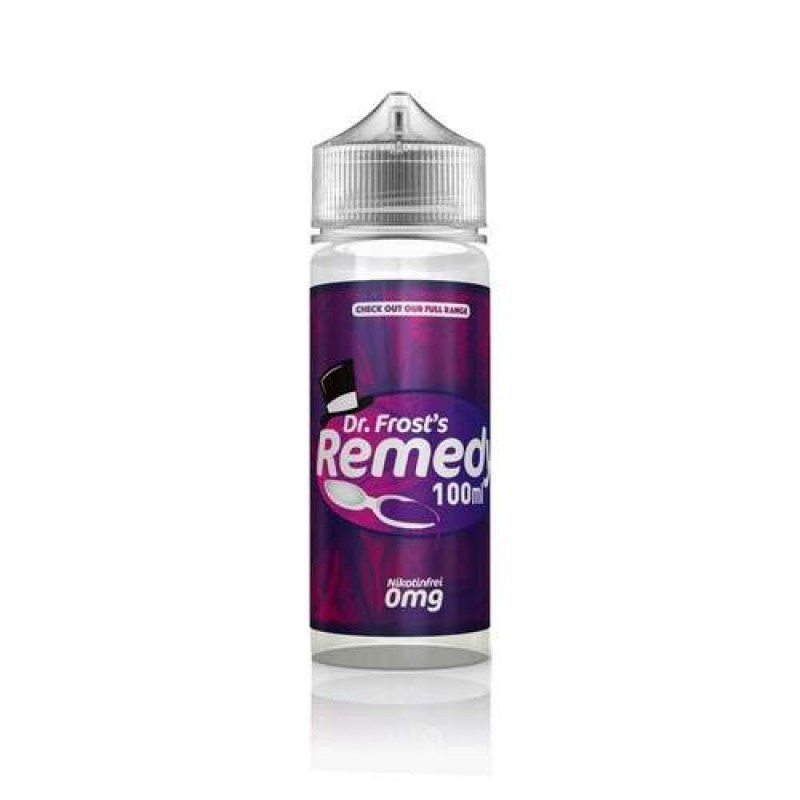 Remedy Shortfill 100ml By Dr Frost The Doc has been in the lab and has come up with one of his best flavours to date. Remedy is the perfect cure for your bogged down cotton and brings back nostalgic memories of your favourite childhood pick-me-up, filled with sweet strawberry goodness.
